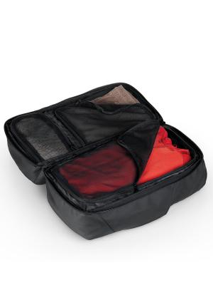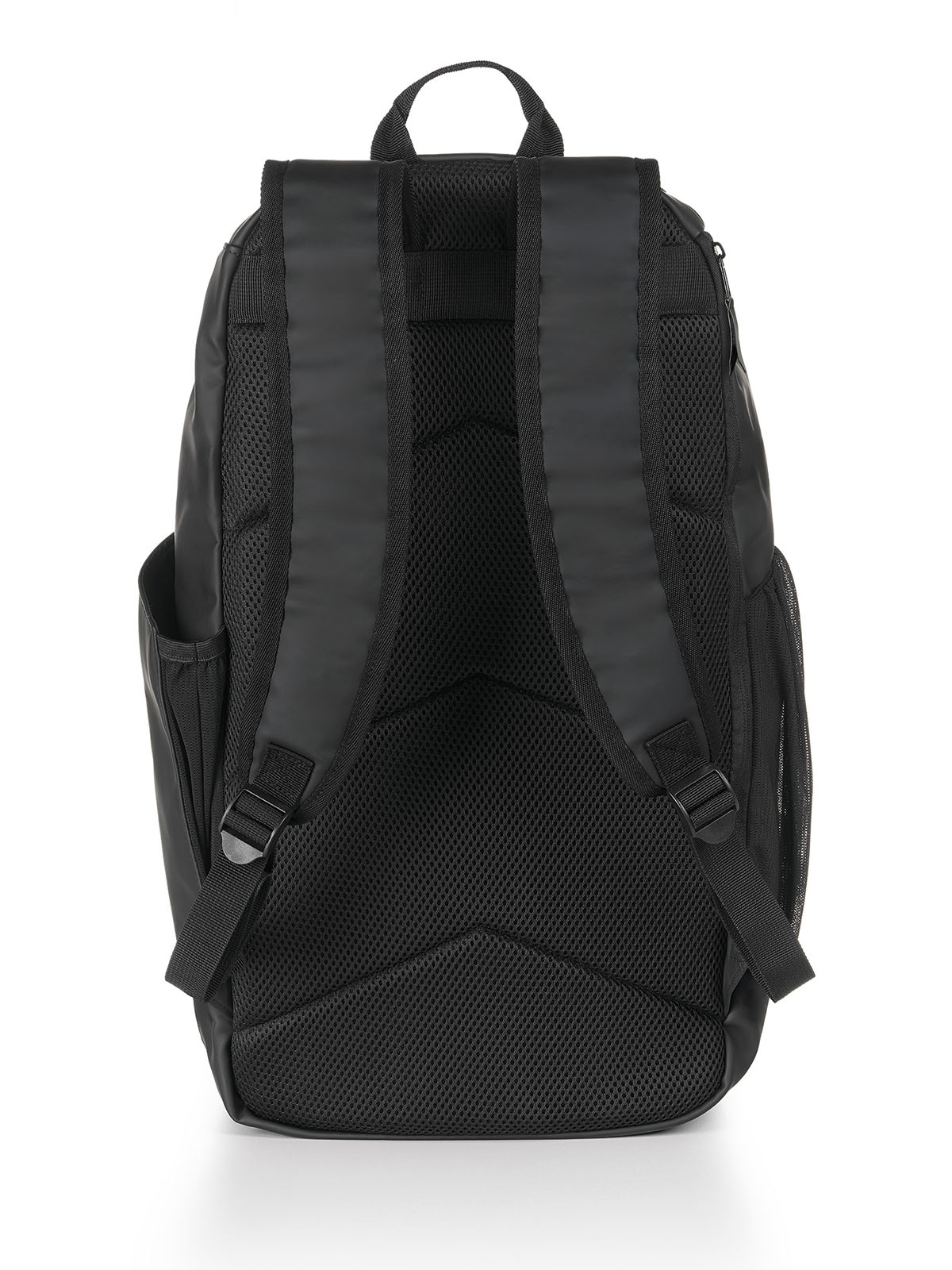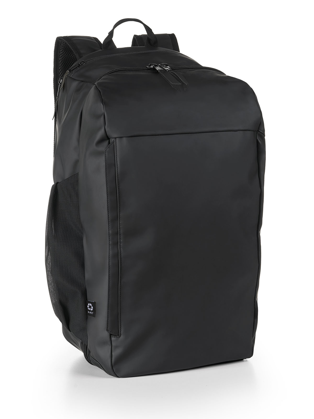 Zaino con interno foderato dotato di 3 scomparti portabiancheria, tasca porta pc sul retro imbottito, tasca superiore e laterale con zip. Tasca in mesh laterale e tasca portaborraccia con soffietto in mesh.