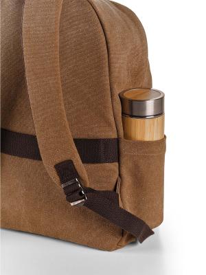 Zaino con vano principale capiente, tasca esterna frontale e portaborraccia laterale. Retro imbottito con fascia trolley e spallacci imbottiti.